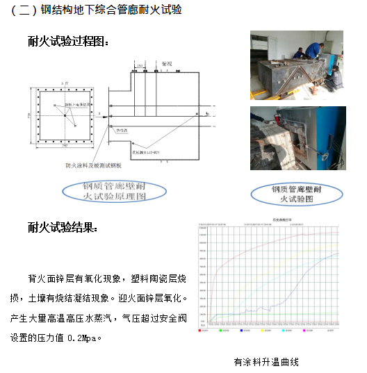 ④更為重要的是,耐火涂料只能阻止火災(zāi)時(shí)鋼結(jié)構(gòu)的溫度不高于 550℃,但對于鋼結(jié)構(gòu)地下管廊來說情況特殊,在火災(zāi)發(fā)生半小時(shí)左右,耐火涂料覆蓋的鋼結(jié)構(gòu)體溫度就超過 150℃,廊體外部土壤中的水份形成高溫高壓蒸汽,其產(chǎn)生的次生災(zāi)害有可能嚴(yán)重于火災(zāi)本身。